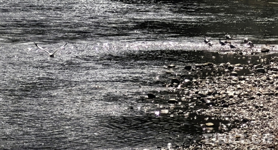 圖為拉薩兩島內(nèi)河綠色生態(tài)廊道一隅,成群的水鳥(niǎo)在河邊棲息 攝影:劉莉