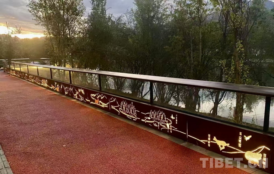 圖為拉薩兩島內(nèi)河綠色生態(tài)廊道上連通南北岸的廊橋護(hù)欄裝飾著吉祥八寶圖案 攝影:劉莉