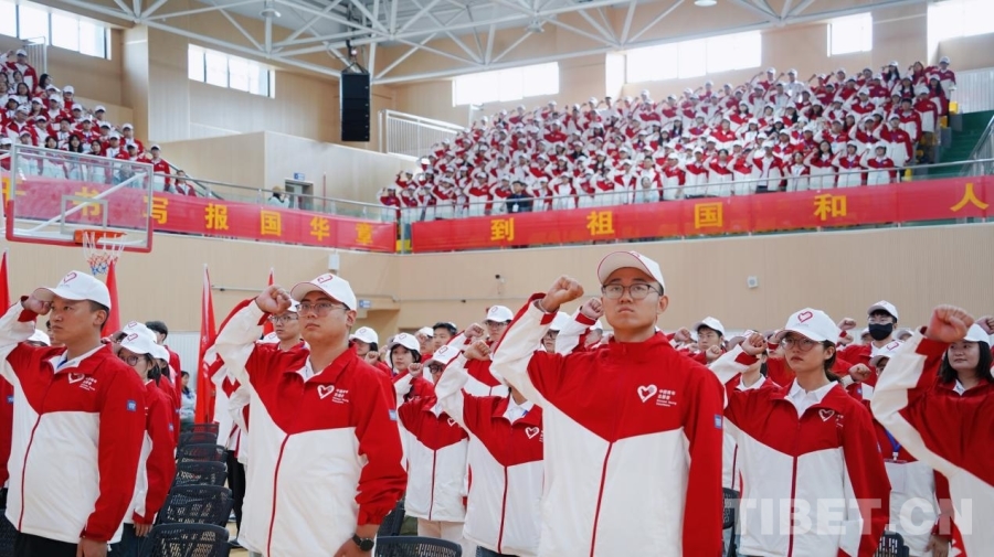 中國西藏網(wǎng)訊 7月29日,激昂的旋律回蕩在拉薩,一場莊嚴(yán)的出征儀式在此舉行。來自北京、河北、四川、湖南、上海、西藏等全國22個(gè)?。ㄗ灾螀^(qū)、直轄市)的1200余名大學(xué)生志愿服務(wù)西部計(jì)劃服務(wù)西藏專項(xiàng)志愿者整裝集結(jié),滿懷壯志,即將奔赴西藏自治區(qū)7市(地)基層一線,開啟為期1至3年的志愿服務(wù)新征程。其中,研究生支教團(tuán)成員達(dá)124人。