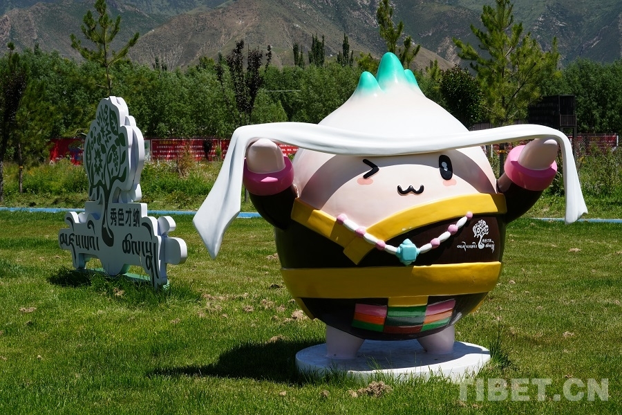 才納園區(qū)的吉祥物叫“芽芽”,其形象是一顆身著藏裝、手捧哈達(dá)的胚芽。“才納”曾名為“菜納”,藏語(yǔ)意為“菜源”。相傳1300年前文成公主進(jìn)藏時(shí),看中了才納的氣候條件,將從大唐帶來(lái)的糧食、花種和藥材播種于此地。由于當(dāng)時(shí)西藏環(huán)境惡劣,只有才納種植成功,因此而得名。