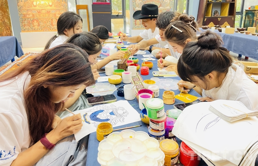圖為重慶大學(xué)“格?;ā编l(xiāng)村振興調(diào)研實(shí)踐活動(dòng)之藏式繪畫體驗(yàn) 重慶大學(xué)供圖