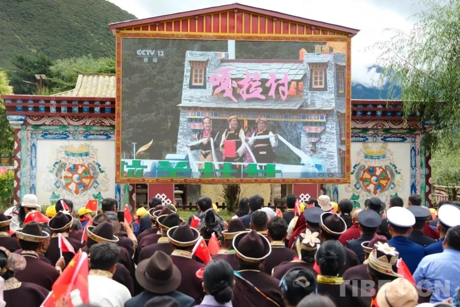 圖為嘎拉村村民觀看西藏自治區(qū)成立60周年慶祝大會(huì) 林芝市委宣傳部供圖