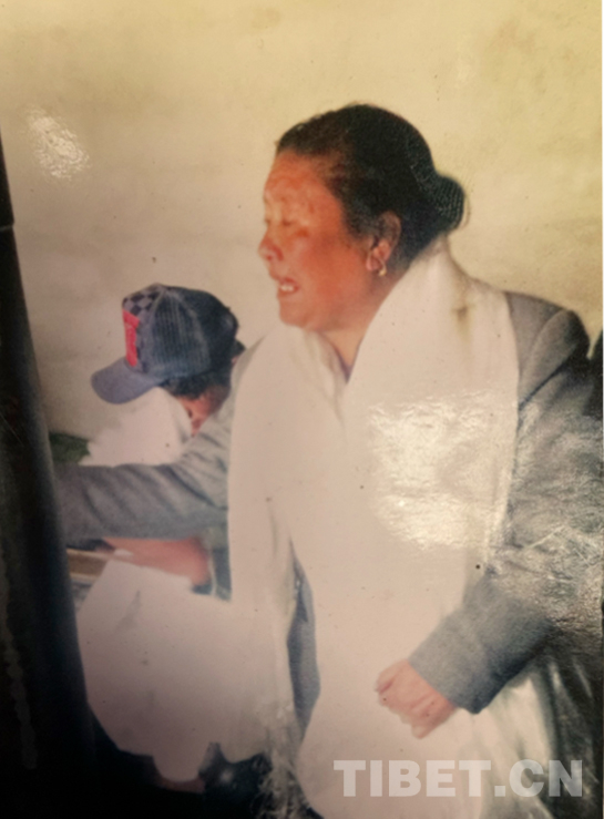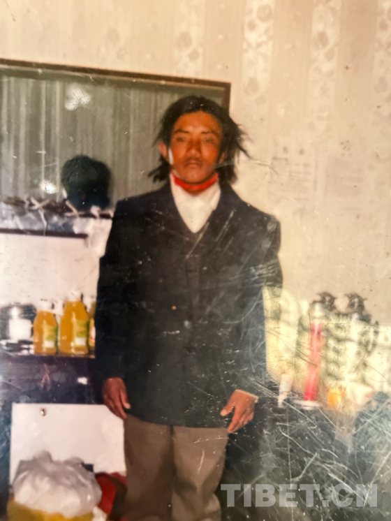 這張照片是我妻子,那時候大概30歲左右,是用新買的相機(jī)拍的。這衣服當(dāng)時也很流行,是拉薩女性的服飾。好像是在過年期間拍的,背景是我家在舊搶古村的房子。這個房子是我們倆結(jié)婚時就住著的,大概住了15年左右。那時候開了茶館和朗瑪廳,條件還不錯,大家都叫我西總。舊村旁邊有條河流,特別是現(xiàn)在草場變好后河水上漲,所以整個舊村都拆除搬遷了,并在原址上種了柳樹。