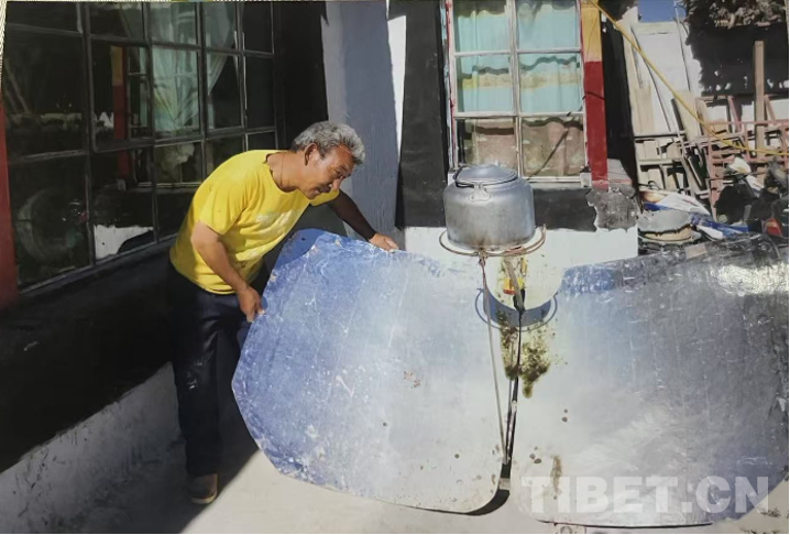 這個是太陽灶,大概是2000年左右,基本上每家每戶都有一臺。我們屬于半農(nóng)半牧,生火用木材,消耗很大。有了這個太陽灶后,不用木料,而且也很方便。但由于存在火災隱患,后來就沒用。我們現(xiàn)在住的這套房子是2018年新建的,照片中的是2018年前的房子。