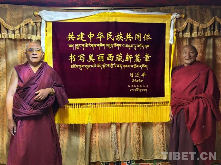 “中央代表團(tuán)來看望我們并贈(zèng)送賀幛,是寺院的無上光榮,我們一定珍惜、保護(hù)好這份榮譽(yù)?!毙⒌撬律送恋巧5ㄒ韵潞喎Q:桑旦)說。