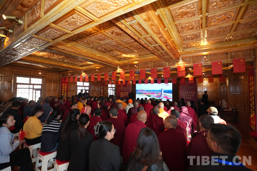 中國西藏網(wǎng)訊 9月3日上午,紀(jì)念中國人民抗日戰(zhàn)爭暨世界反法西斯戰(zhàn)爭勝利80周年大會(huì)在北京天安門廣場(chǎng)隆重舉行,以盛大閱兵儀式,同世界人民一道紀(jì)念這個(gè)偉大的日子,共同開創(chuàng)更加光明的未來。同一時(shí)刻,在云南省迪慶藏族自治州香格里拉市松贊林寺,130余名我國宗教界人士觀看大會(huì)直播,共同見證這一歷史性時(shí)刻,感受新時(shí)代中國國防力量,激蕩愛國愛教情懷。