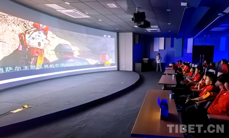 圖為西藏阿里噶爾縣孔繁森小學師生在山東聊城孔繁森精神教學基地觀看電影《孔繁森》 攝影:劉莉