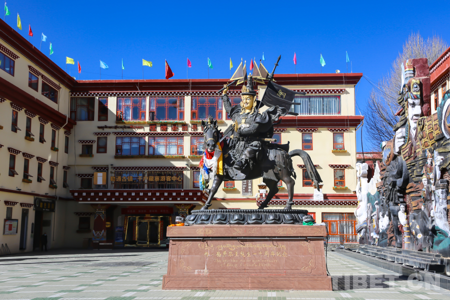 圖為理塘格薩爾王廣場(chǎng)上的格薩爾銅像 攝影:龍真多吉