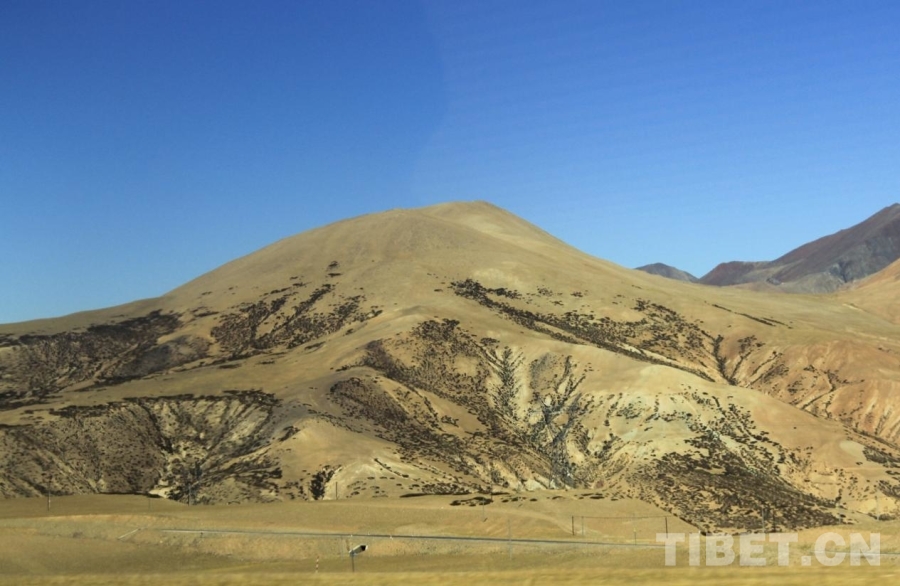 圖為阿里普蘭到札達(dá)沿途,有些山上覆蓋有低矮植被,仿若山長(zhǎng)出“胡子” 攝影:趙釗