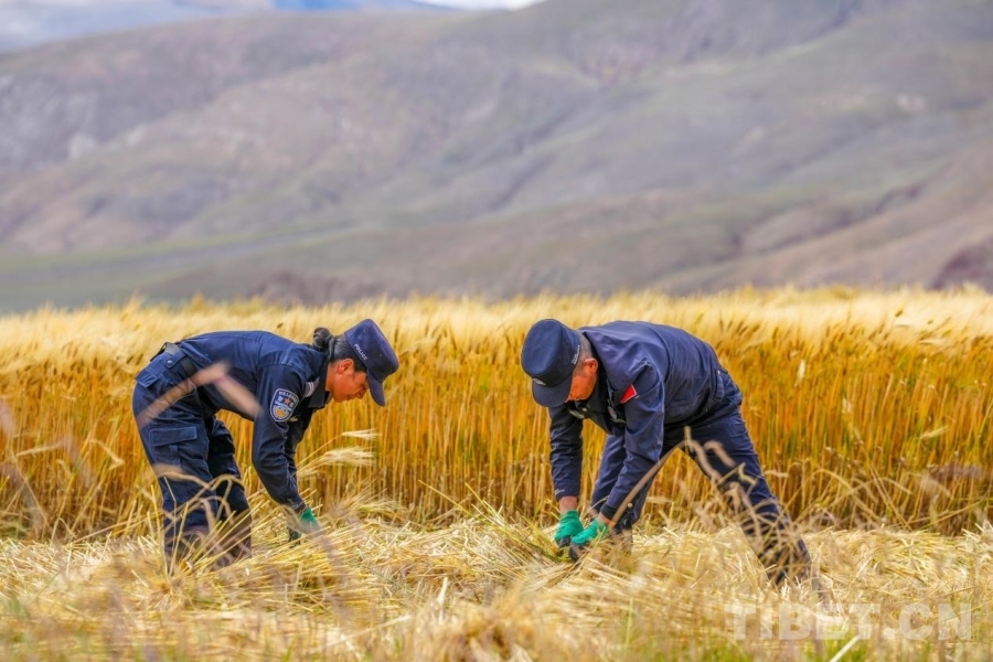 中國西藏網(wǎng)訊 金秋時節(jié),青稞飄香。9月底,西藏日喀則邊境管理支隊涅如麥邊境派出所民警們深入田間,在廣袤的田野上,與農(nóng)牧民一同俯身勞作,揮鐮收割,搶收青稞。金黃麥浪中,那一抹抹“警察藍”與辛勤的群眾構(gòu)成了一幅警民情深、秋收喜悅的動人畫卷。(中國西藏網(wǎng) 通訊員/葉軼 記者/趙振宇)