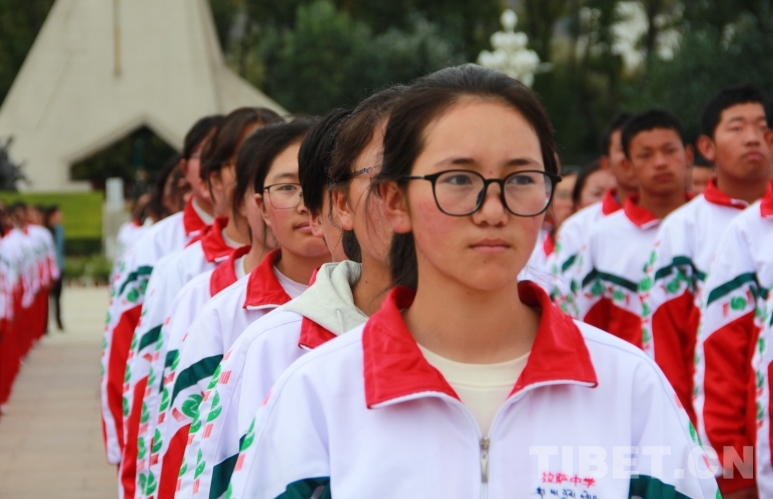 圖為師生代表在布達(dá)拉宮廣場上參加升國旗儀式 攝影:趙釗