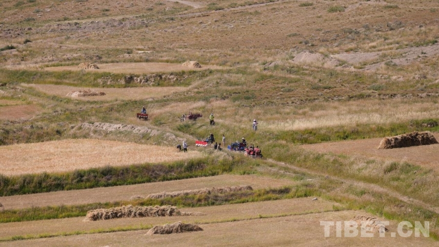 圖為聯(lián)合收割機(jī)工作現(xiàn)場(chǎng) 攝影:德吉卓瑪