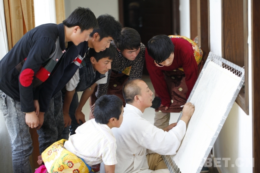 在這次活動(dòng)中,我接觸到了眾多唐卡大師,他們宛如藝術(shù)殿堂中的大師級(jí)工匠,各自散發(fā)著獨(dú)特的光芒。眾多唐卡畫(huà)師里面,給我印象深刻的是娘本。為了了解娘本社會(huì)公益和愛(ài)心助學(xué)的事情,今年八月份我們?nèi)ニ漠?huà)院拜訪。