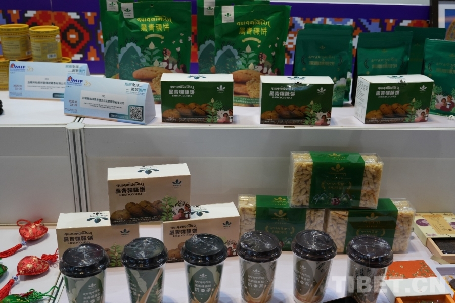 阿壩縣地處川甘青三省交界處,平均海拔3300米,擁有“高原糧倉”的美譽。公司總經(jīng)理、董事長俄周介紹:“我們的品牌叫‘托崗黑青稞’,‘托崗’就是藏語高原的意思。以黑青稞為原材料加工出來的產(chǎn)品不僅好吃,而且具有很高的營養(yǎng)價值?!边@是公司第一次來參加MIF,俄周帶了多款產(chǎn)品參展,其中一款青稞脆餅是公司的明星產(chǎn)品,單品年銷量在100萬袋以上。