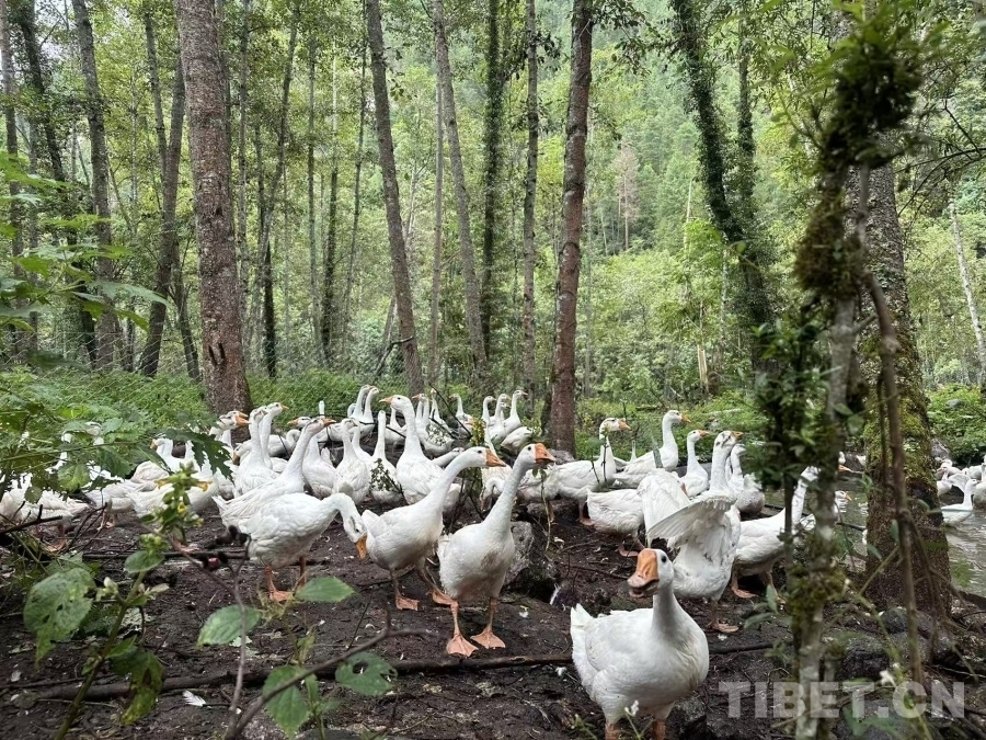 圖為上察隅鎮(zhèn)珠聯(lián)村的大白鵝養(yǎng)殖基地 仁青旺姆供圖