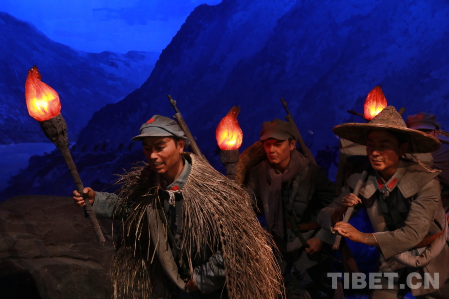 圖為紅軍飛奪瀘定橋紀(jì)念館內(nèi)部的紅軍夜行軍的模型場(chǎng)景 攝影:王妍丹
