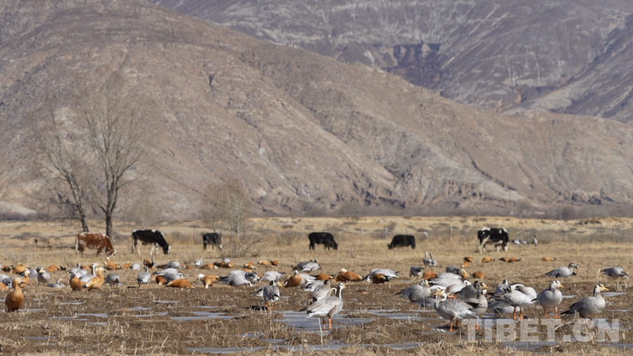 在南木林縣艾瑪鄉(xiāng)周邊,不少黑頸鶴陸續(xù)抵達(dá)并集群棲息,為越冬積蓄能量。它們或在河畔低頭啄食,或閑庭信步梳理羽翅,時(shí)而振翅舒展身姿。
