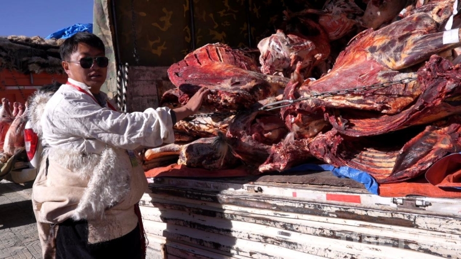 中國(guó)西藏網(wǎng)訊 12月15日上午10時(shí)許,西藏自治區(qū)那曲市色尼區(qū)物流園區(qū)農(nóng)貿(mào)市場(chǎng)內(nèi)人頭攢動(dòng)。牧民們正忙碌地從貨車上卸下各類畜牧產(chǎn)品,為即將開幕的那曲市第十八屆畜產(chǎn)品展銷會(huì)做最后準(zhǔn)備。