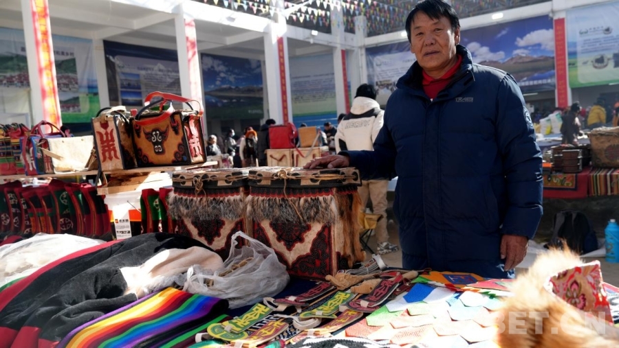 在巴青縣阿秀鄉(xiāng)3村村民彭措的展臺(tái)前,充滿牧區(qū)特色的服飾、背包和裝飾品等吸引了不少顧客。彭措告訴記者,所有產(chǎn)品均為純手工制作,技藝從父親傳到他,如今他又傳給了兒子,父子二人共同從事手工藝制作?!叭缃窭习傩丈钤絹碓胶茫瑢?duì)手工藝品的需求也越來越多。”他高興地說,“去年展銷會(huì)銷售額達(dá)到五六萬元,今年希望能賣得更好!”