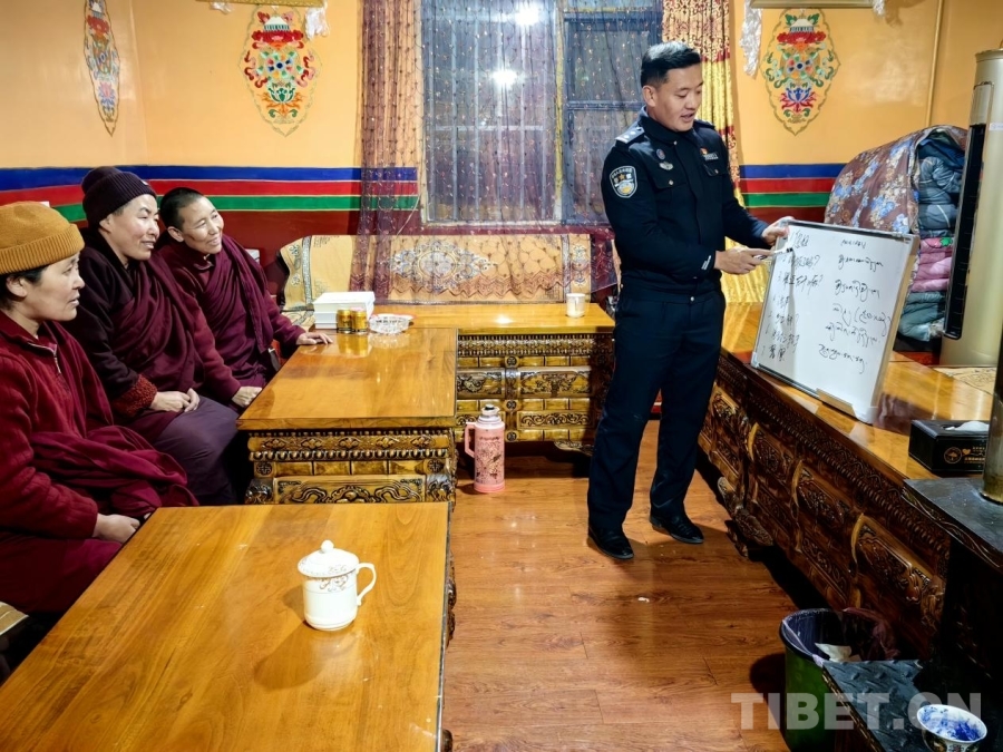 圖為民警更丁丁久為帕巴寺尼姑們開展國(guó)家通用語(yǔ)言文字學(xué)習(xí)培訓(xùn)