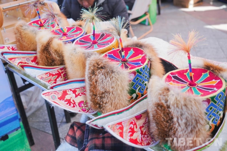 圖為展銷(xiāo)會(huì)擺放的那曲牧區(qū)藏帽
