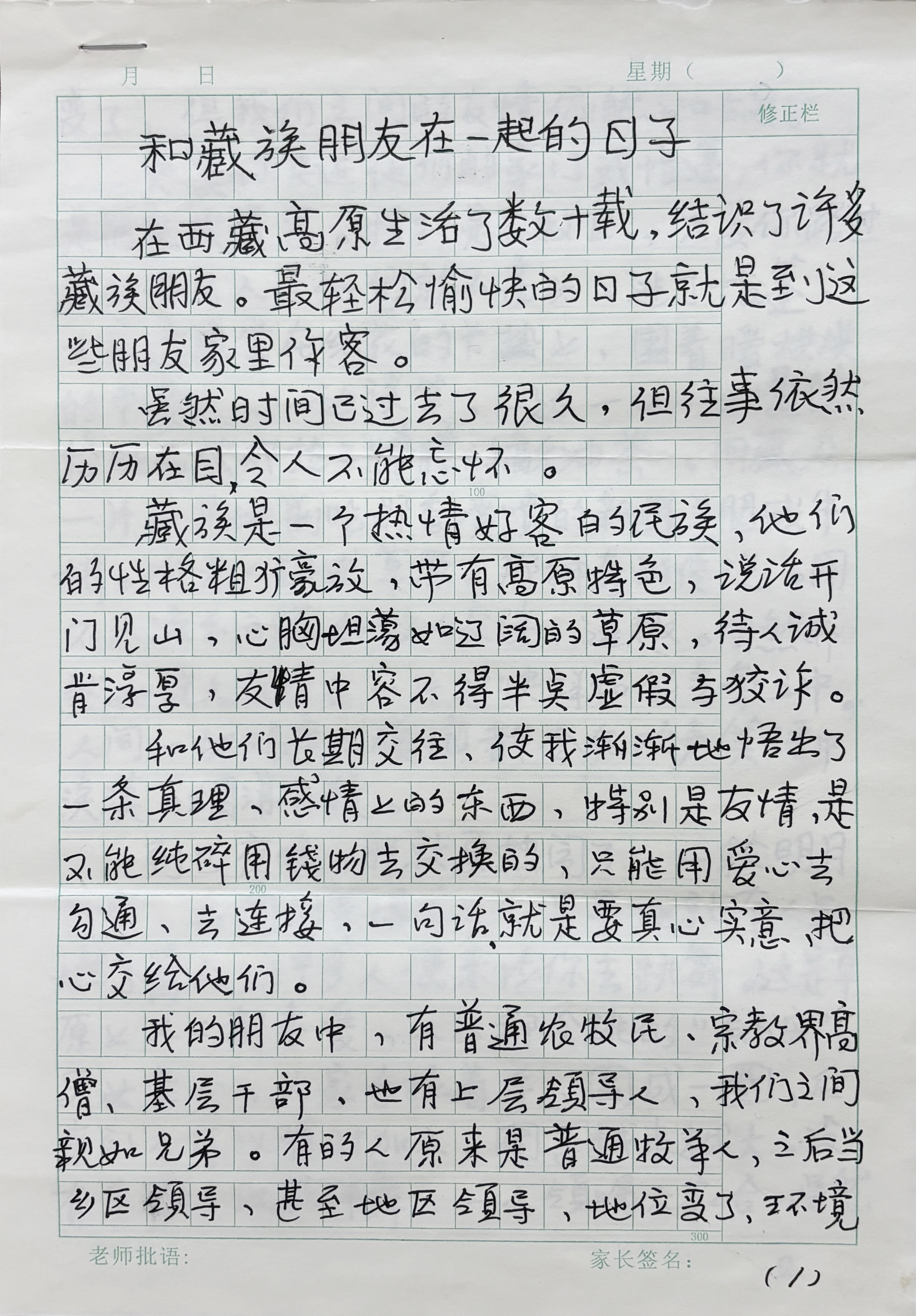 圖為讀者手寫投稿文章《和藏族朋友在一起的日子》摘登