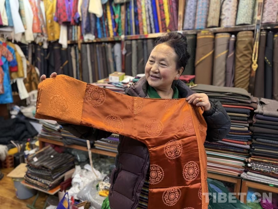 位于拉薩八廓古城區(qū)附近的羅布桑培服裝店內(nèi),前來選購藏裝的顧客絡(luò)繹不絕。店主色珍啦在此經(jīng)營已有二十余年,從最初銷售農(nóng)產(chǎn)品逐步轉(zhuǎn)型為專營藏裝。她表示,每逢新年來臨,店內(nèi)客流量明顯增加,為滿足顧客需求,今年準備了更加豐富的面料、顏色和款式供選擇。