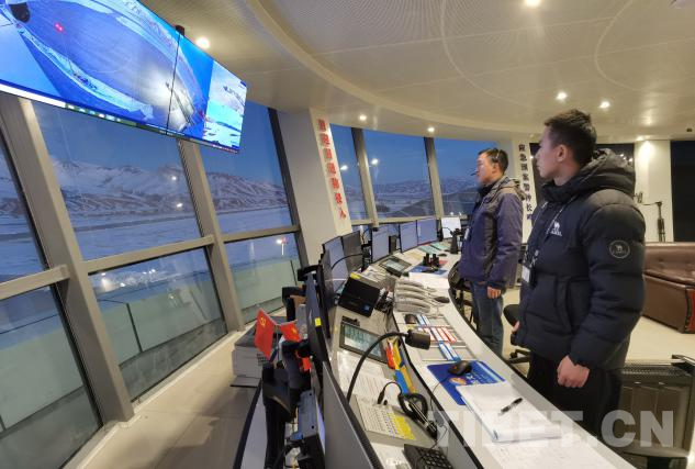 普蘭機(jī)場工作人員春節(jié)期間在塔臺(tái)指揮飛機(jī)起降