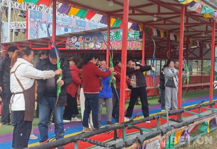 旅行團參與射箭等林卡特色互動項目