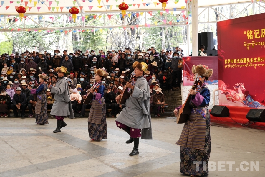 3月28日,以“銘記歷史 珍惜今天 開創(chuàng)未來”為主題的紀(jì)念西藏民主改革67周年暨“3·28”西藏百萬農(nóng)奴解放紀(jì)念日群眾文藝演出活動在拉薩舉行。演出現(xiàn)場,各族各界群眾自發(fā)前來觀看。67年前的今天,雪域高原迎來新生,百萬農(nóng)奴掙脫枷鎖,成為這片土地的主人;67年后的今天,拉薩正以昂揚(yáng)姿態(tài)奔跑在高質(zhì)量發(fā)展的康莊大道上。群眾通過藏戲、噶爾魯、扎念彈唱等豐富多彩的表演,共同紀(jì)念這個意義非凡的日子。(中國西藏網(wǎng) 實(shí)習(xí)記者/宋俊 張藝彤)
