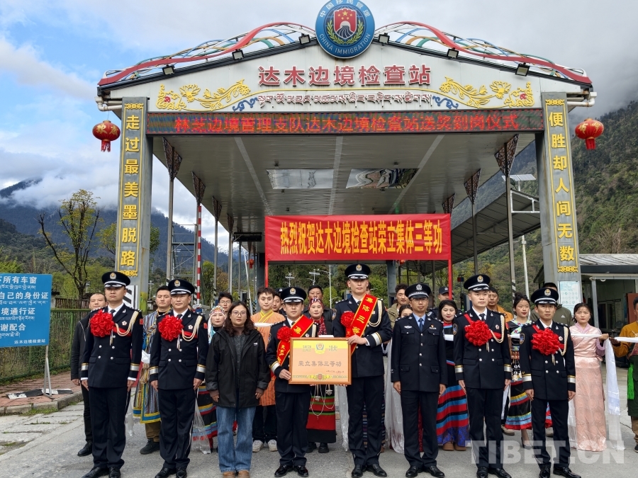 送獎(jiǎng)小組為達(dá)木邊境檢查站集體三等功頒發(fā)證書