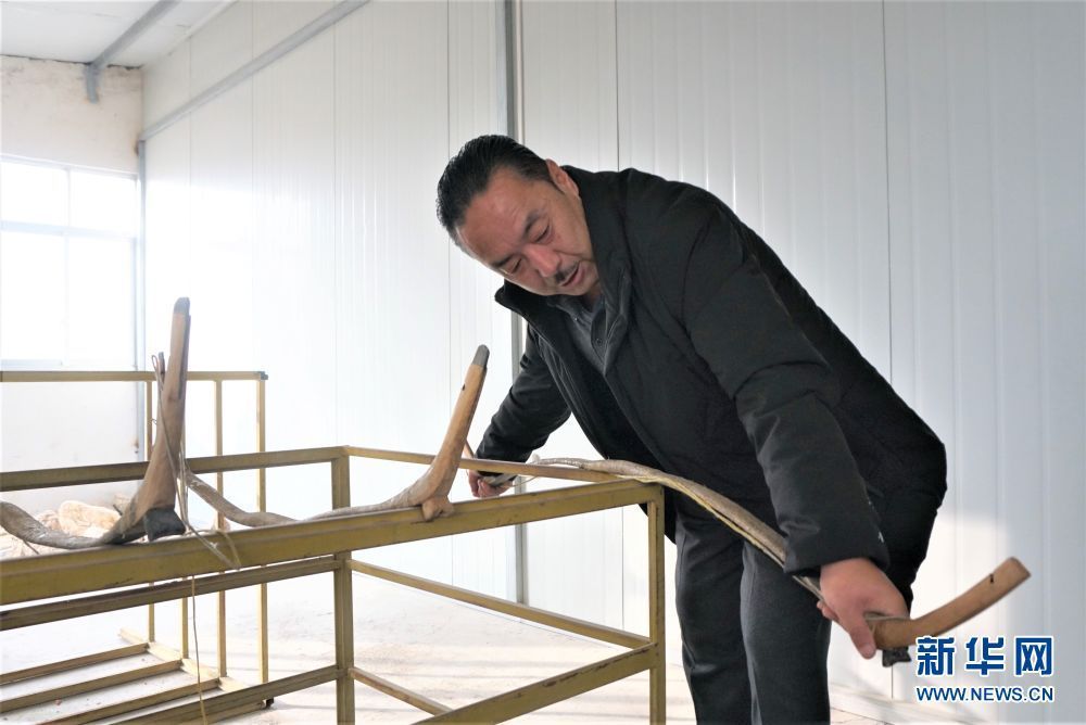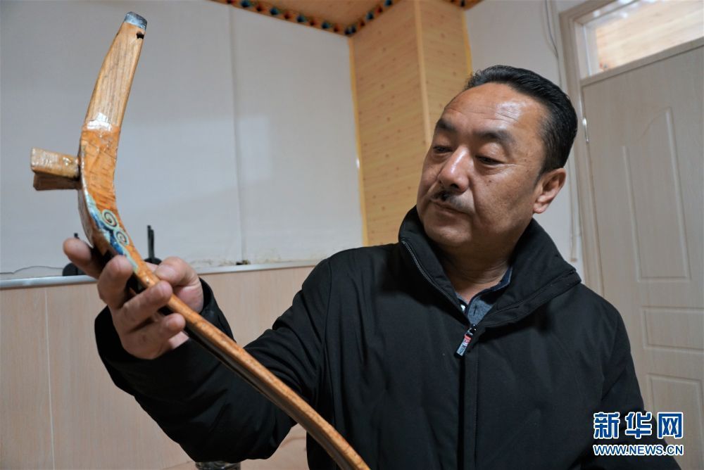 奧松多杰在檢查牛角弓的質量(1月16日攝)。新華社記者 李占軼 攝