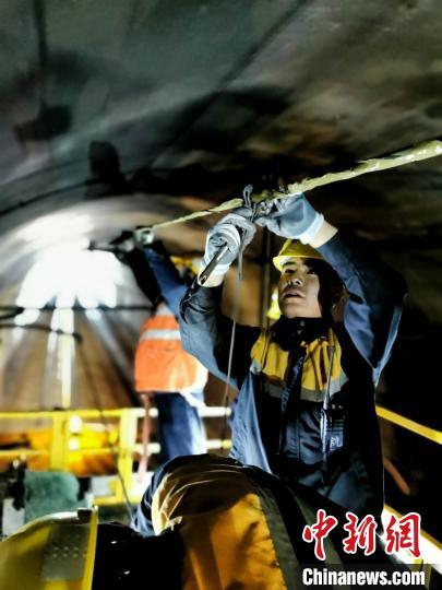 圖為錫鐵山接觸網(wǎng)巡檢工區(qū)職工們利用接觸網(wǎng)作業(yè)車對隧道森漏水情況進(jìn)行查看。尚增艷 攝