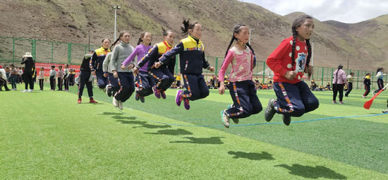 新修的操場是他“套路”到的,400米的標(biāo)準(zhǔn)跑道,比縣里小學(xué)的那個還好。這原本是鄉(xiāng)里的文體設(shè)施,班瑪多杰軟磨硬泡,央求著領(lǐng)導(dǎo)批準(zhǔn),把這個操場修到了學(xué)校旁邊?!傲弧敝?,一場運動會就在這個操場上舉辦了。跑步,拔河,跳遠……