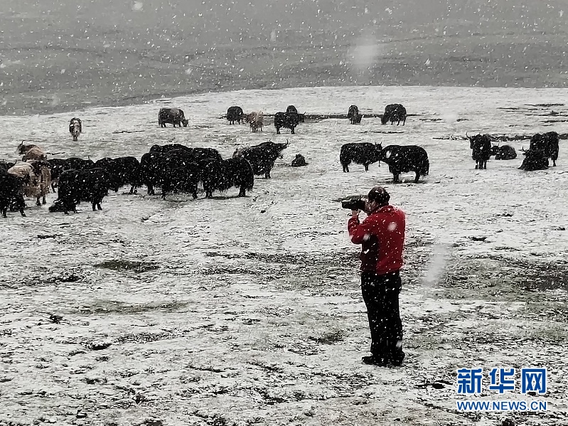 趙新全在青海省玉樹藏族自治州曲麻萊縣拍攝牦牛影像資料(2019年6月28日手機拍攝)。 新華社發(fā)