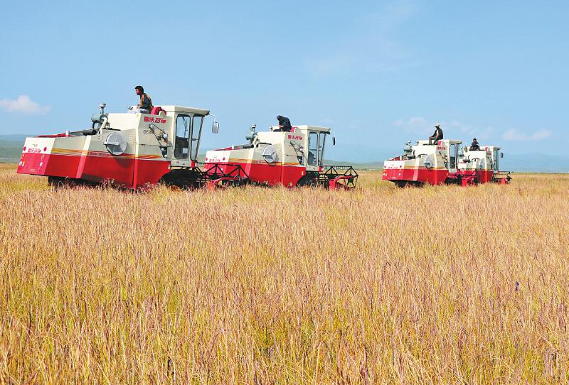 機(jī)械化采收。(圖片由紅原縣委宣傳部提供)