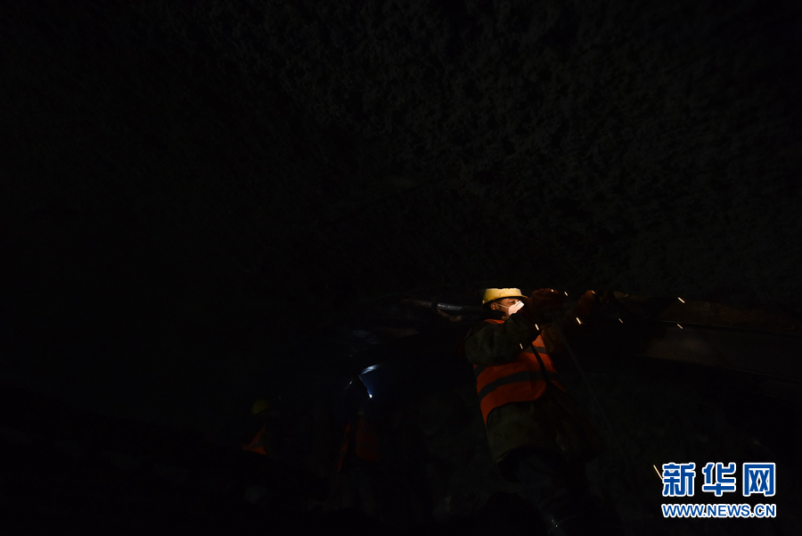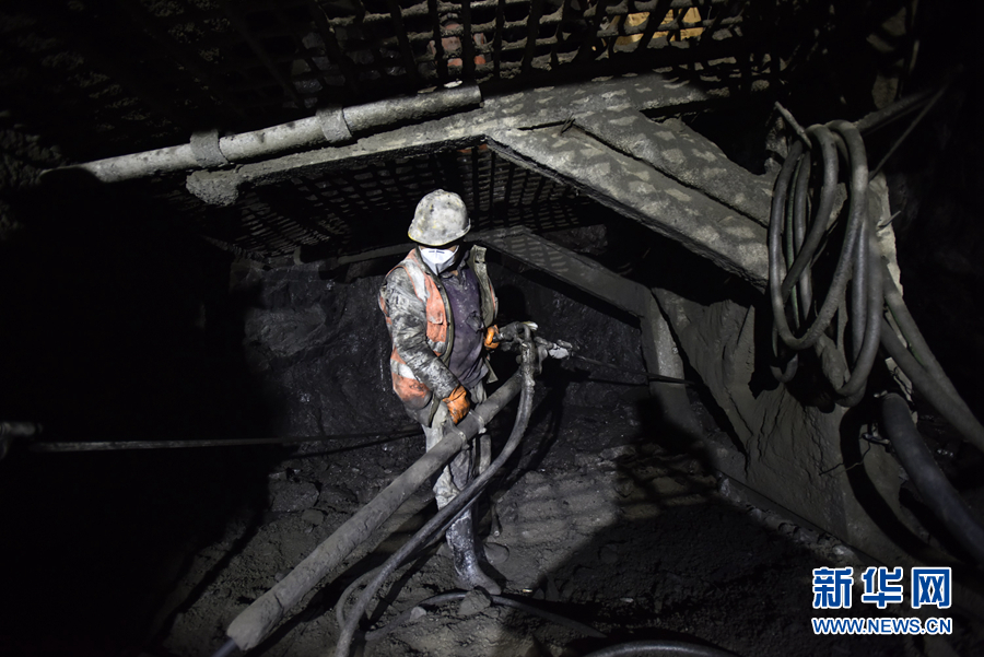 12月12日,中交二公局四公司盤大項目部在多隆隧道進(jìn)行打孔作業(yè)。新華網(wǎng) 趙遵平 攝