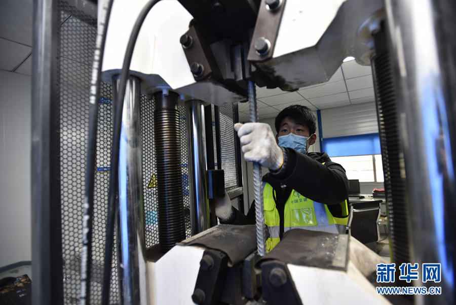 12月12日,實驗室人員在檢測鋼筋強(qiáng)度。新華網(wǎng) 左小明 攝