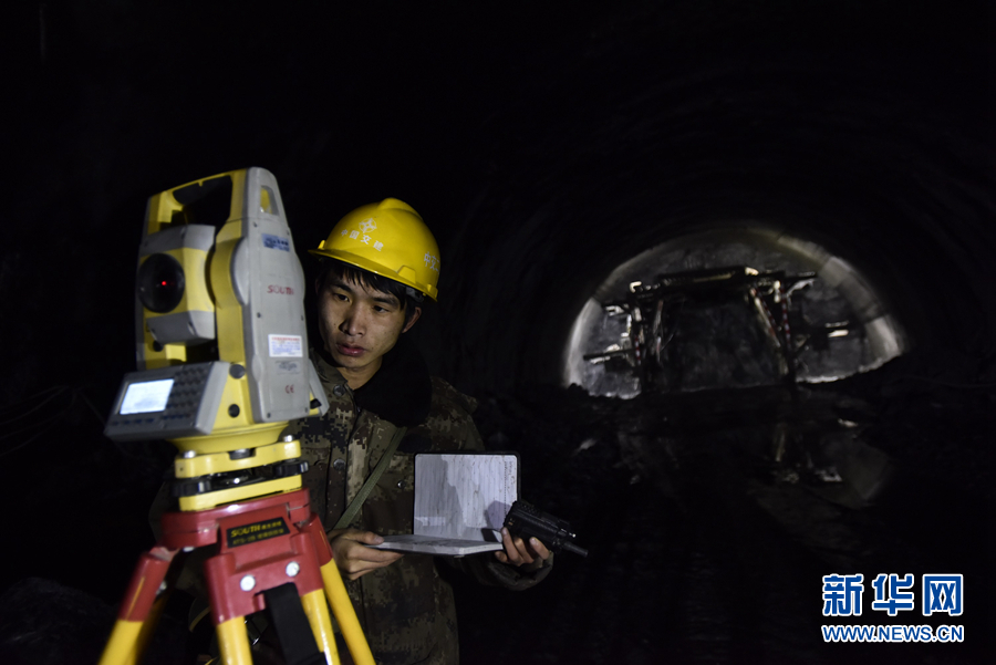 12月13日,中交二公局四公司盤大項目部勘測人員在多隆隧道進(jìn)行現(xiàn)場勘測。新華網(wǎng) 左小明 攝