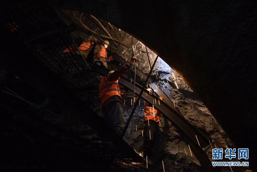 12月13日,中交二公局四公司盤大項目部在多隆隧道進(jìn)行焊接作業(yè)。新華網(wǎng) 左小明 攝