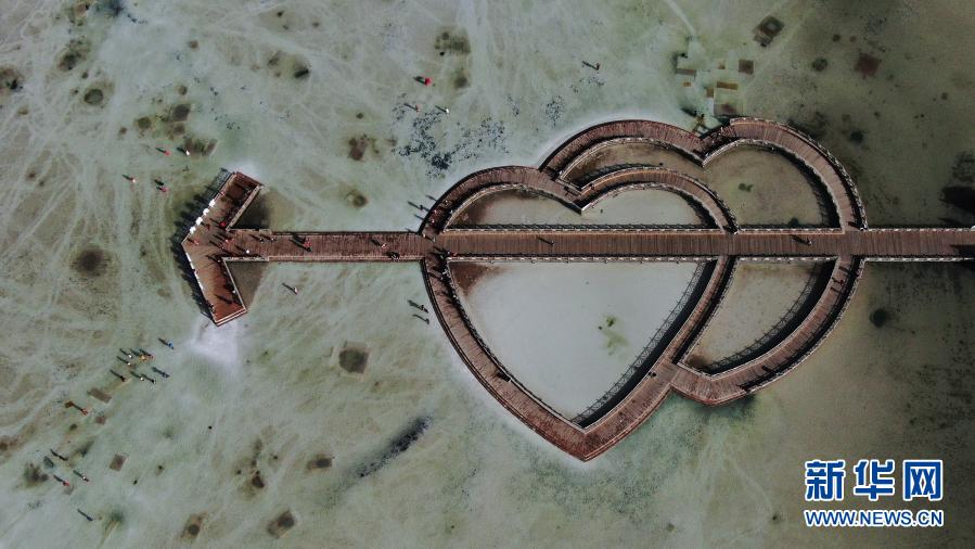 這是9月23日拍攝的茶卡鹽湖“天空之鏡”景區(qū)一角(無人機(jī)照片)。新華社記者 張龍 攝