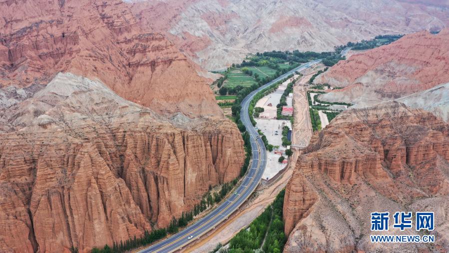 這是6月15日拍攝的位于青海貴德縣境內(nèi)的丹霞地貌(無人機(jī)照片)。新華社記者 吳剛 攝