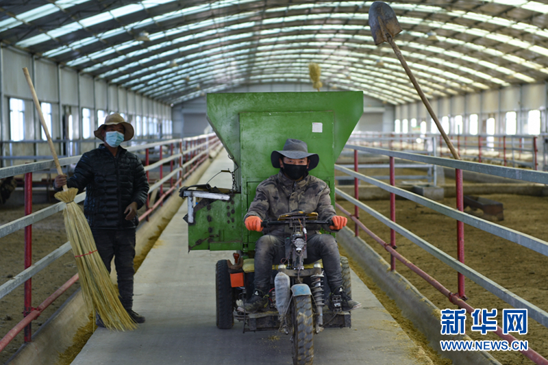 天氣轉寒,一大早,澤本太來到牛棚里打掃衛(wèi)生,添加飼草。29歲的澤本太是金山生態(tài)畜牧業(yè)專業(yè)合作社的一名放牧員,每天操心著牧場里的數(shù)百頭牛羊。而在一年前,他還是一個靠天吃飯的“放羊娃”。