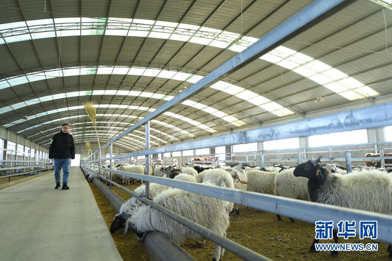 馬金山在羊棚里查看羊群長勢。新華網(wǎng) 潘彬彬 攝