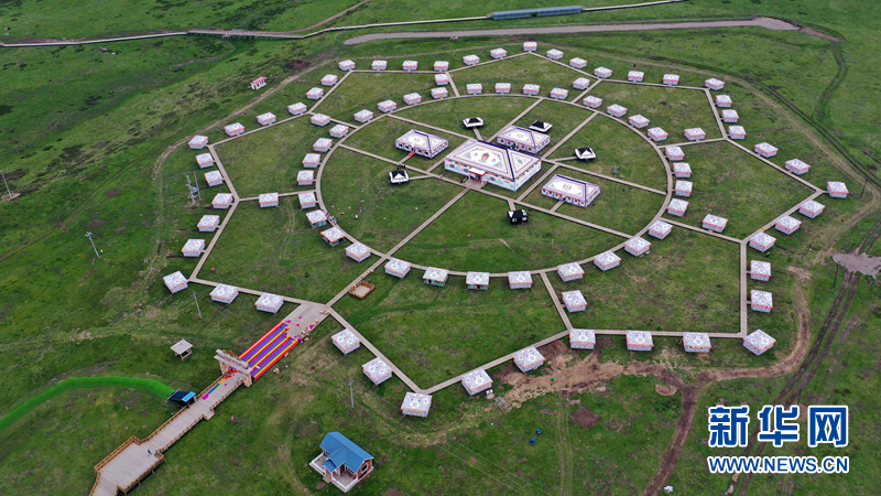 這是2020年6月20日拍攝的甘南藏族自治州碌曲縣尕海鎮(zhèn)尕秀村帳篷城景區(qū)(無人機照片)。新華社記者 陳斌 攝