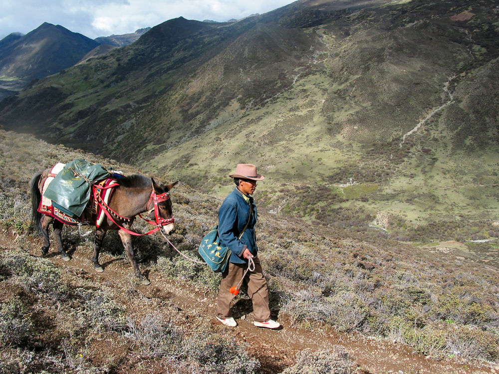 2005年9月27日,王順友行走在“馬班郵路”上(中國郵政集團(tuán)有限公司四川省分公司供圖)。