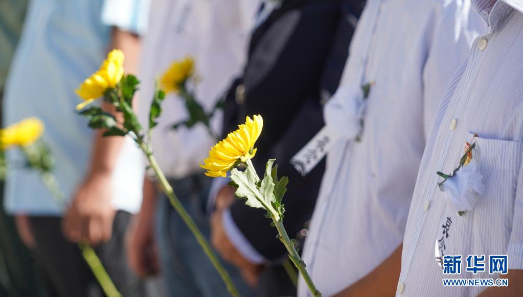 6月1日,人們拿著菊花在木里縣殯儀館參加王順友告別儀式。新華社發(fā)(陳居偉 攝)
