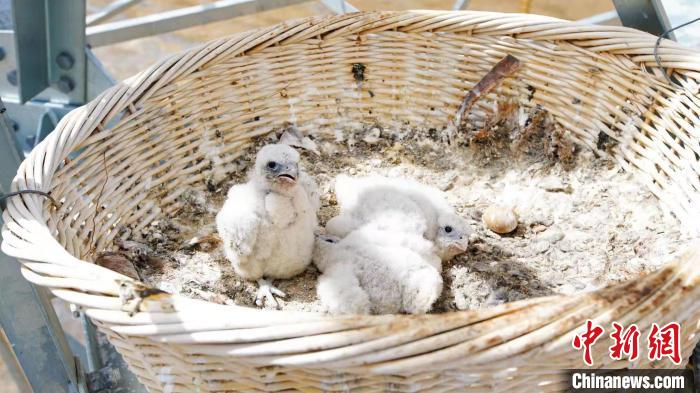 圖為國網(wǎng)青海檢修公司員工在青藏聯(lián)網(wǎng)工程線路鐵塔上加裝的人工鳥窩中成功孵出了幼鷹。朱毅然 攝