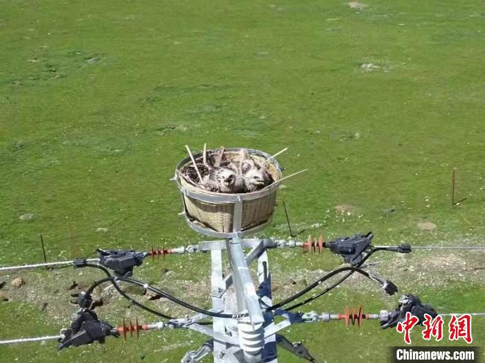 圖為在青海玉樹隆寶自然保護(hù)區(qū)10千伏線路上加裝的人工鳥窩中成功孵化出了大鵟幼鳥。徐曉韜 攝