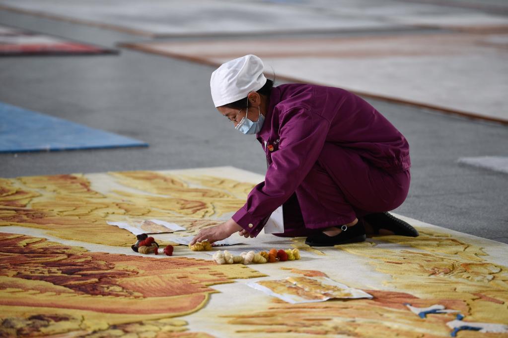 6月7日,在青海圣源地毯集團(tuán)有限公司的生產(chǎn)車(chē)間內(nèi),工人正在對(duì)藏毯進(jìn)行處理。新華社記者 張龍 攝